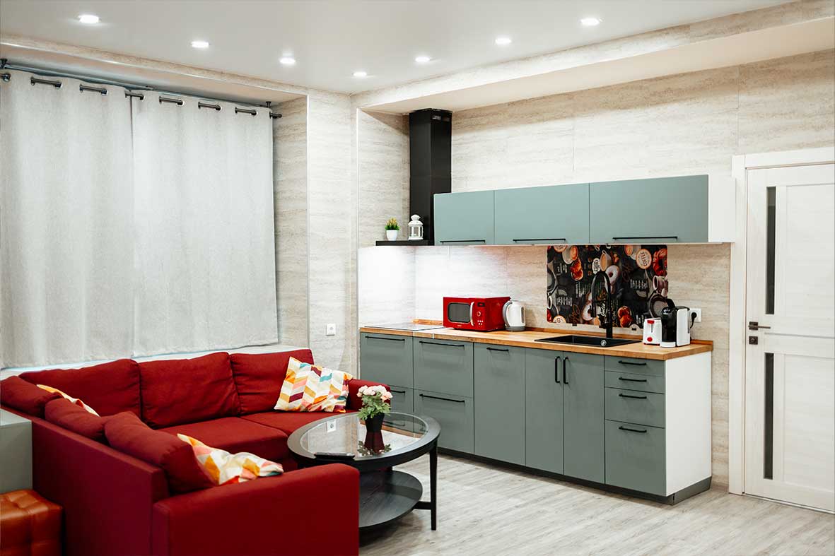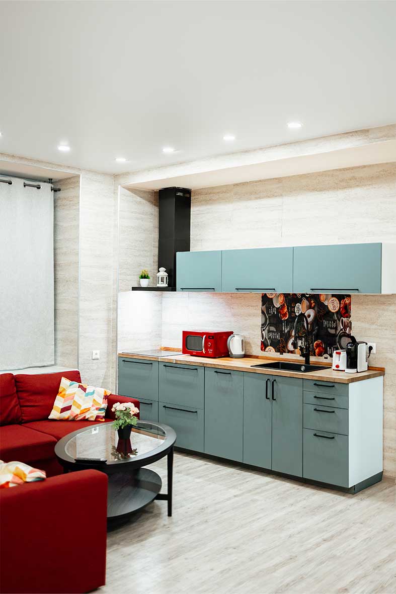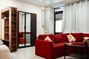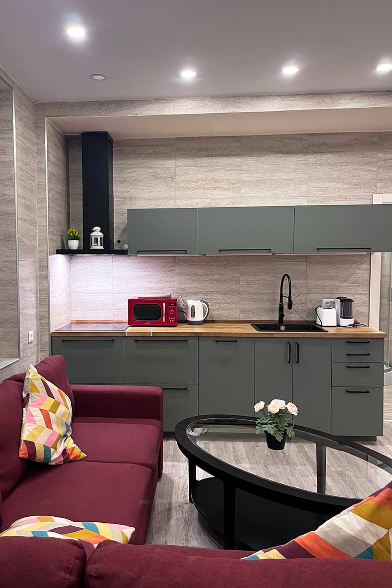 Квартира-студия 1 расположена на одном уровне с рестораном Бизон.