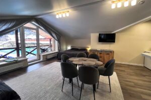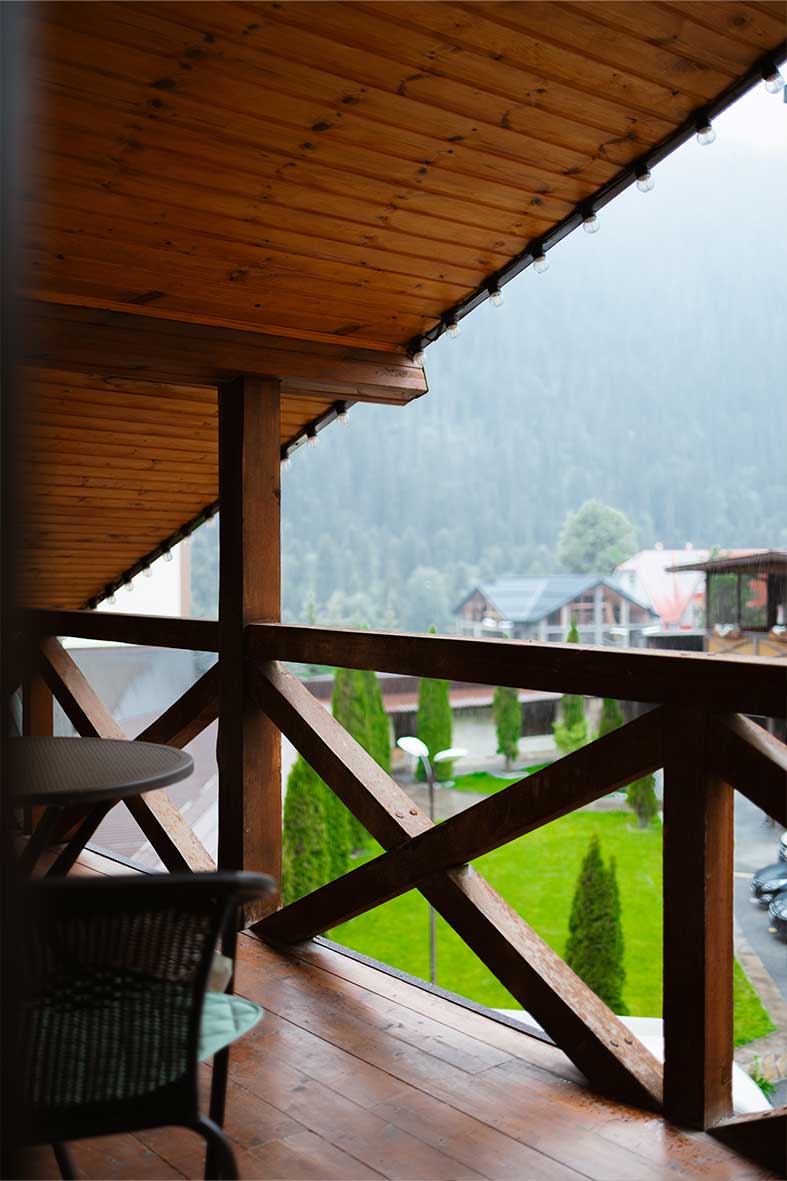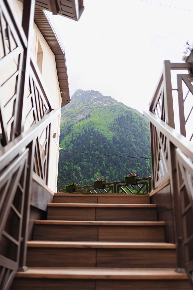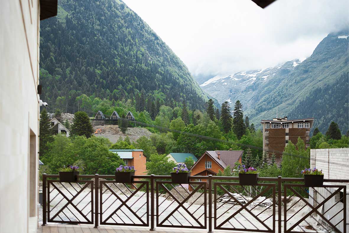 Из квартиры есть выход на балкон, с которого открывается вид на горы и канатную дорогу.