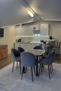 В проживание в данной квартиры включено посещение бассейна Dombay SKI&SPA на -1этаже. Вас ждет теплый плавательный бассейн, малый бассейн с морской водой, и гидротермальная зона с аквагейзером. Также гостям предоставляется бесплатная парковка на один автомобиль.