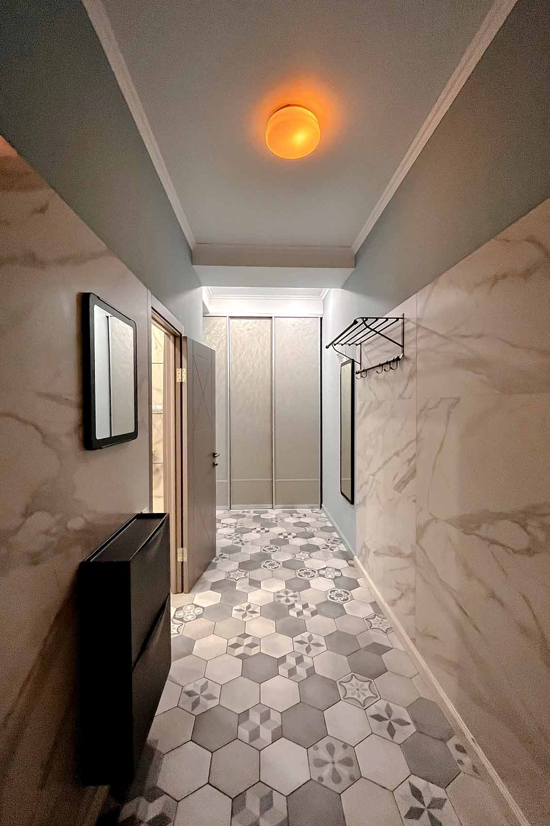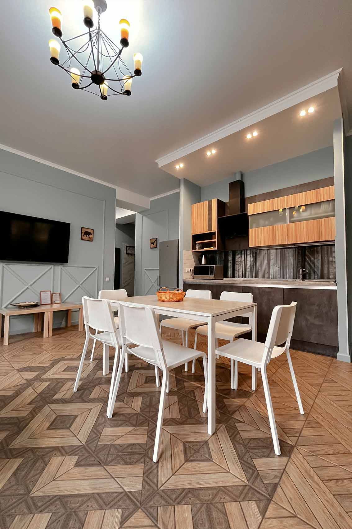 Трехкомнатная квартира в европейском стиле расположена на 1 этаже.