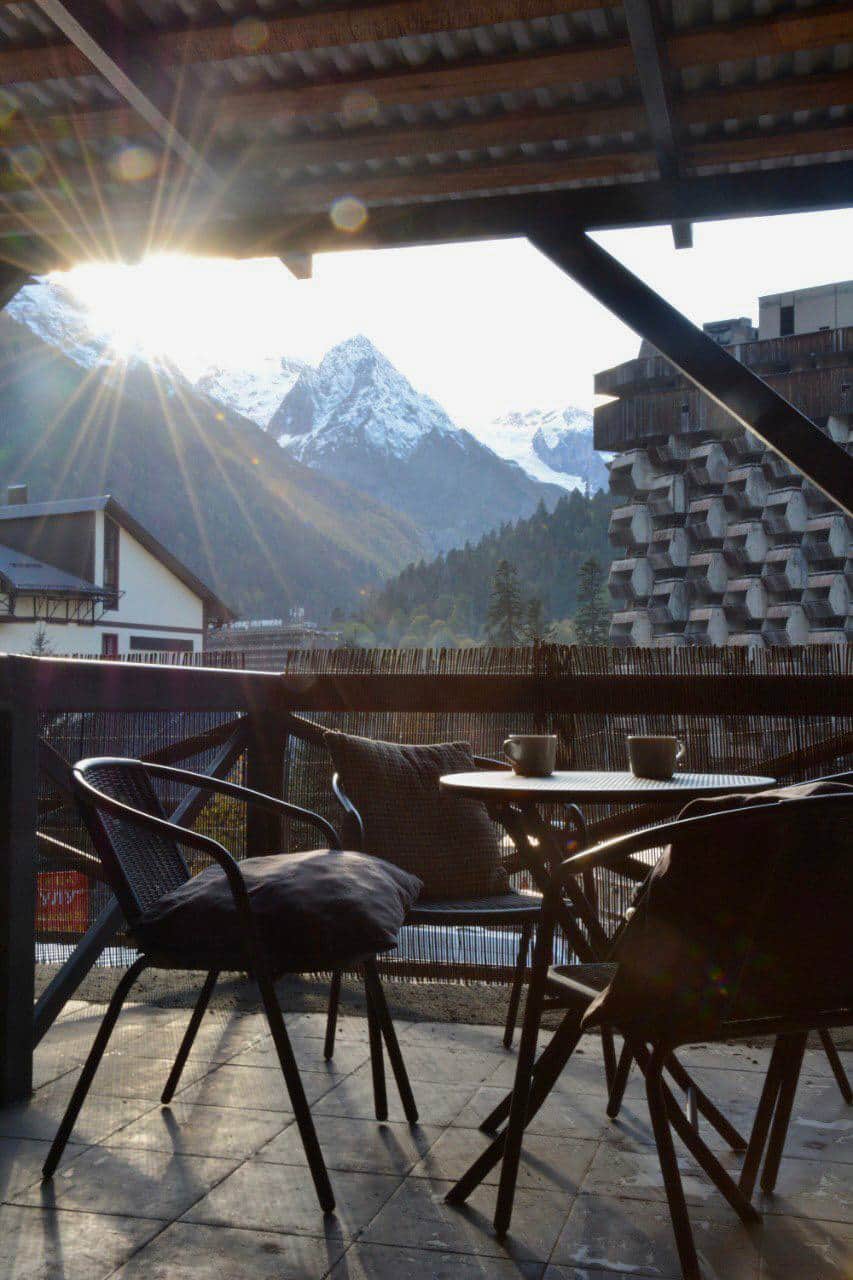 В квартире есть просторная общая терраса на несколько квартир. С террасы открывается живописный вид на центральную улицу на фоне гор. К спальне примыкает застекленный балкон.