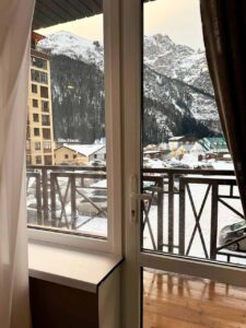 Квартира расположена на втором этаже здания «Крокус», над территорией жилого комплекса Вершина.