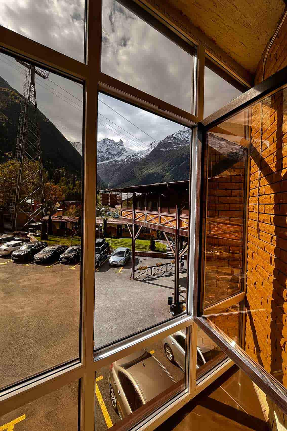 - Красивый вид на горы и канатную дорогу