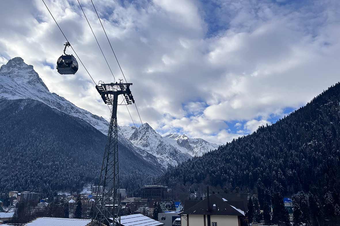 - Красивый вид на горы и канатную дорогу