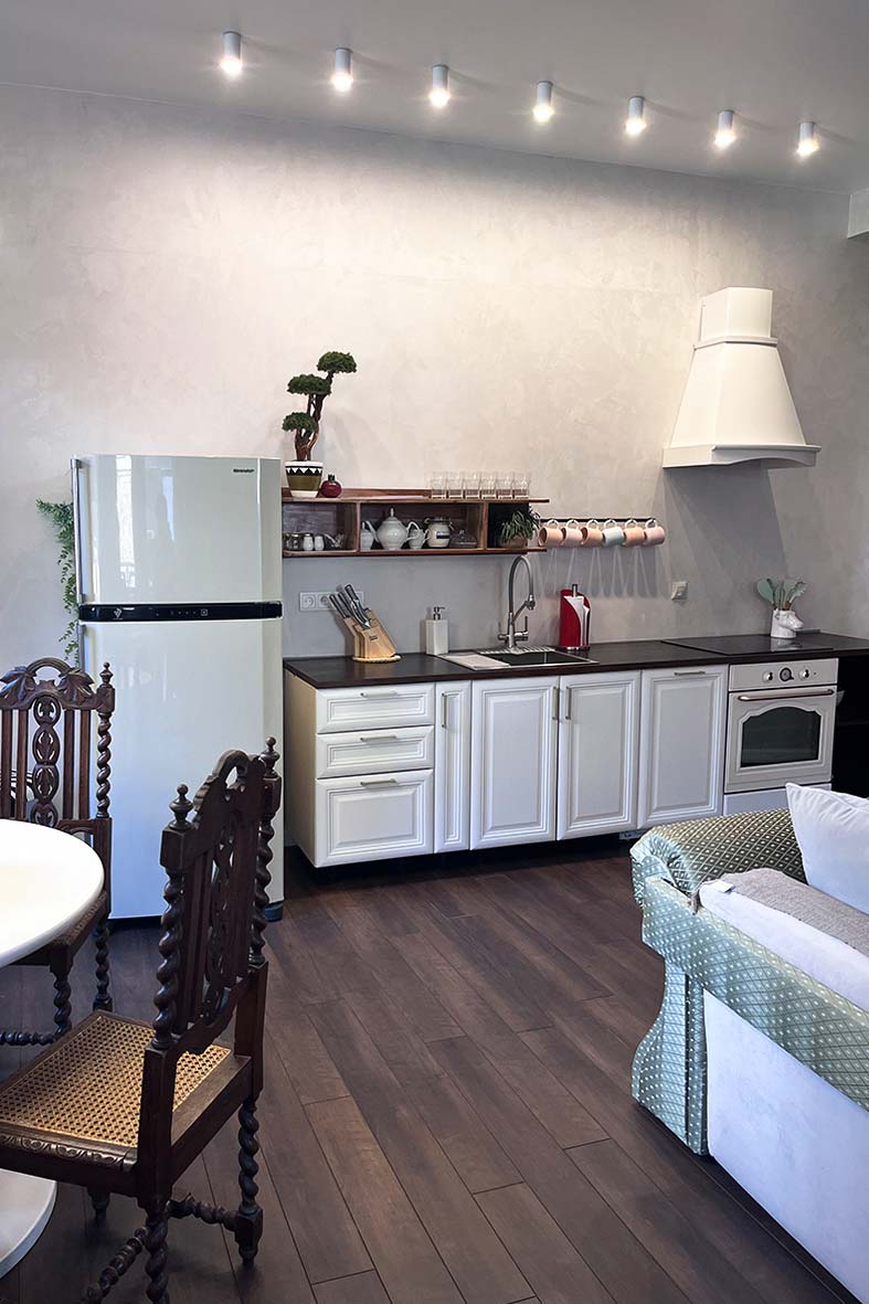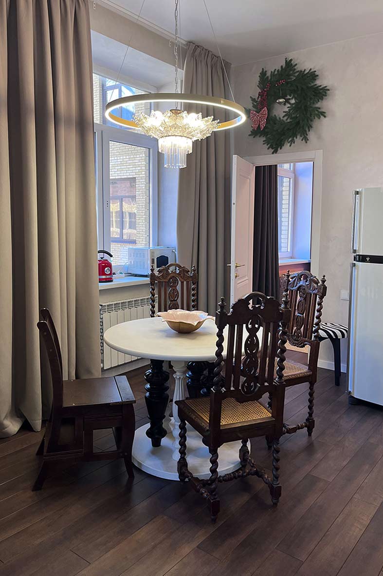 Квартира с элементами колониального стиля, расположена на третьем этаже.