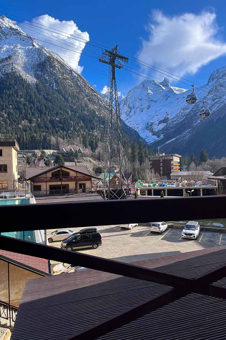 - Вид на горы и канатную дорогу