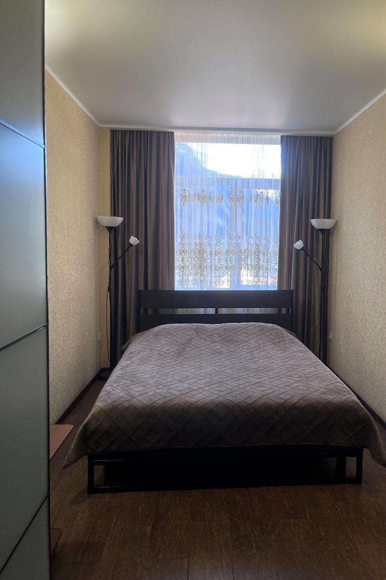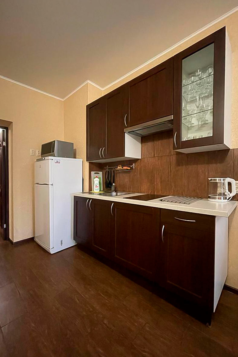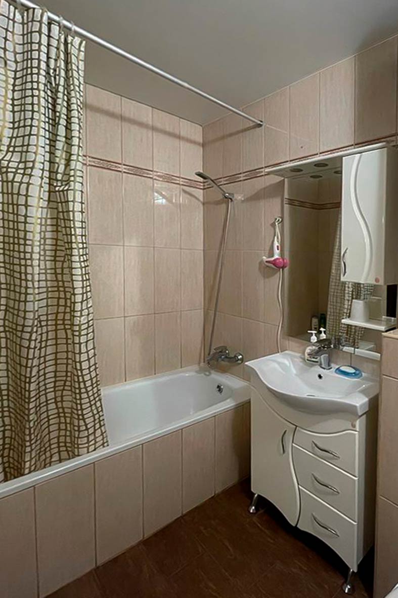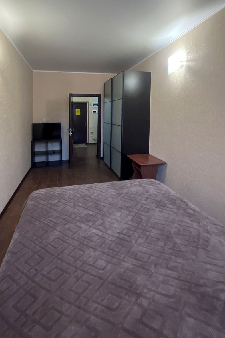 В квартире изолированные кухня и спальня. В ванной комнате – ванна и унитаз. В спальне установлена двуспальная кровать, на кухне и в холле – раскладные диваны.