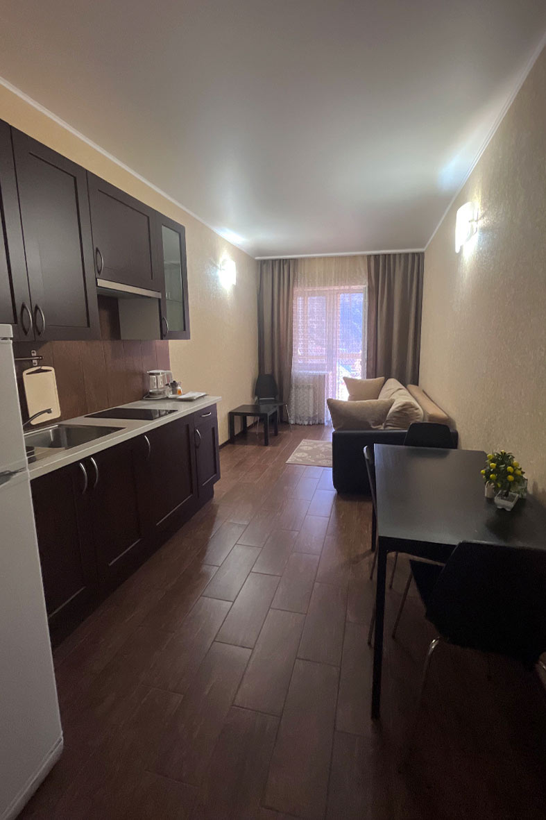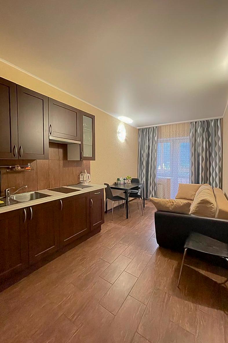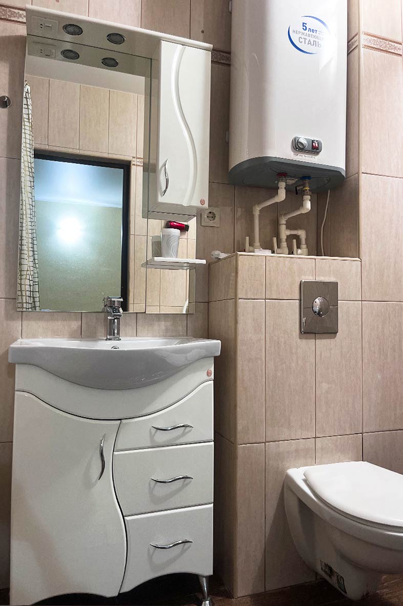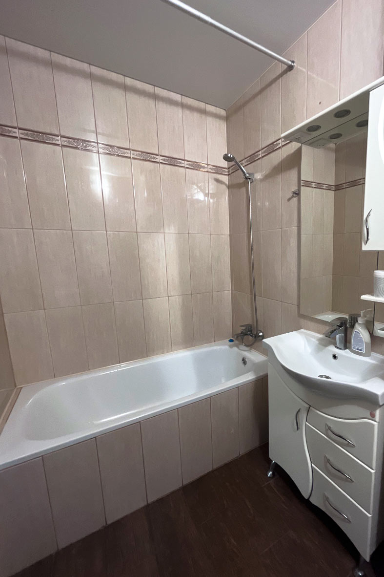В квартире изолированные кухня и спальня. В ванной комнате – ванна и унитаз. В спальне установлена двуспальная кровать, на кухне и в холле – раскладные диваны.